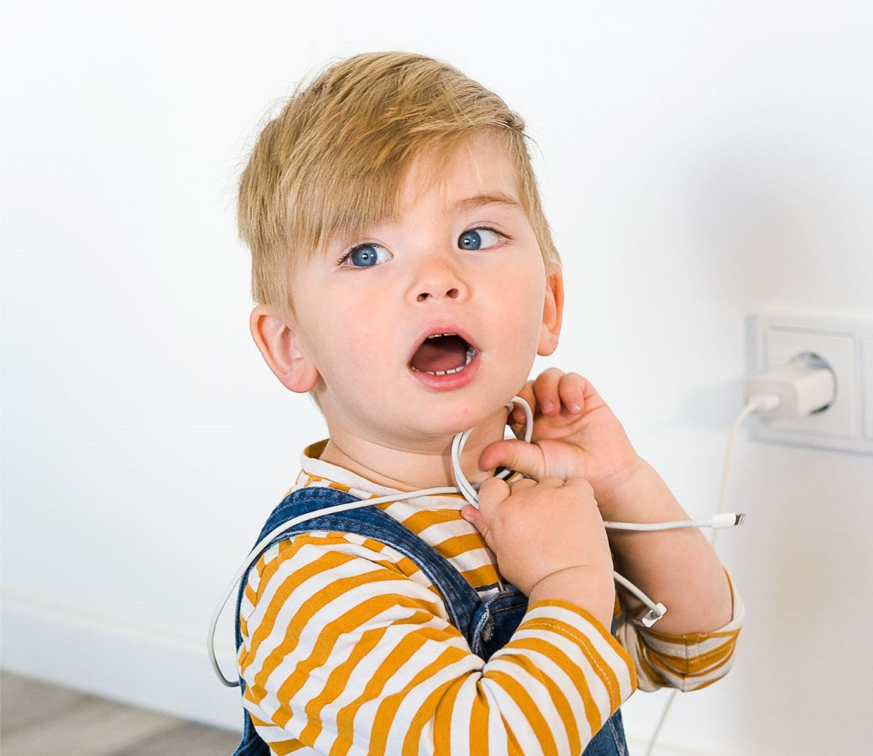 Vor allem Lightning Ladekabel haben direkt zugängliche elektrische Ladekontakte. Was oft nicht bedacht wird: Speichel ist elektrisch leitend, weshalb auch nach innen gelegte Ladekontakte, wie bei USB-C Kabeln, eine Gefahr für dein Kind darstellen können ... von den ganzen Ärgernissen wie Defekten der Elektronikware abgesehen. Bedenke unbedingt auch die Strangulationsgefahr bei langen Ladekabeln! Wir empfehlen Eltern daher dringend die Verwendung möglichst kurzer Kabel!